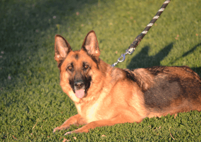 Rose is the littermate of Trudy and looks and acts very much like a sister would. She is an impressive female that brings new bloodlines into our kennel. Rose has five OFA certifications: elbow, teeth, cardiac, patella, and hip. In addition to her great health, she is energetic and smart. Rose has the classic black and tan markings perfect size and proportions and she is a loving yet protective mother. Rose is AKC, CKC, and WWKC registered. Her DNA is on file with AKC. Both of Rose’s parents have OFA-certified hips. Rose has been genetically tested for Degenerative Myelopathy (DM) and Multidrug Resistance 1 (MDR1) and has been found clear on both accounts.